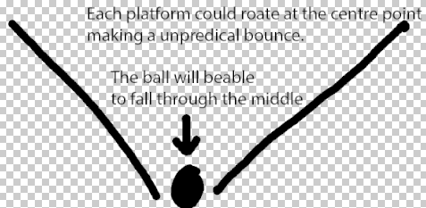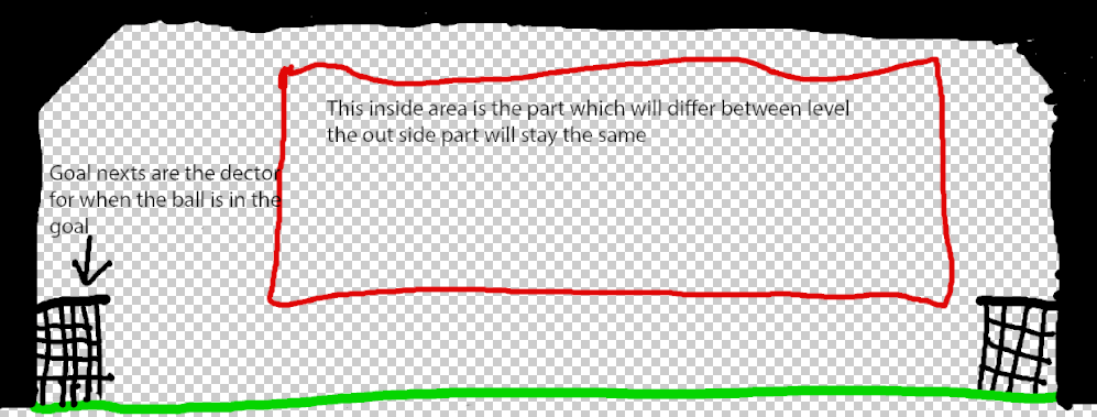 Here is some level designs thought of, I made these in Photoshop with a graphics tablet. I included some arrows and examples where the ball can role through. The first picture is how the main part of the level is going to look like with the two goals, then the rest of the pictures are the different parts which go in the red square for different levels.